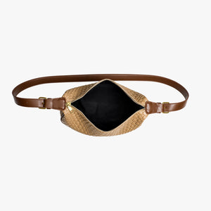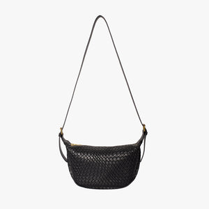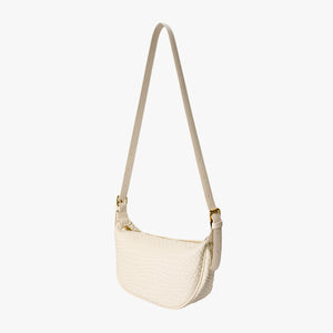 - Typ: Mini‑Umhängetasche, Halbmond‑Form