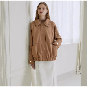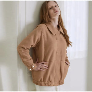 Oversize-Jacke mit entspannter Passform, entworfen für einen modernen und natürlichen Alltagslook. Der Umlegekragen, der Reißverschluss und der leicht elastische Saum sorgen für eine klare, zeitgemäße Silhouette.