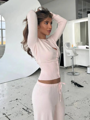 Slim-Rippstrick-Patchwork-Cardigan mit Cut-out