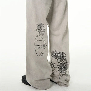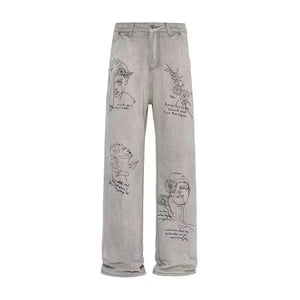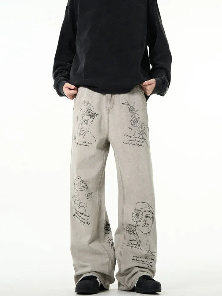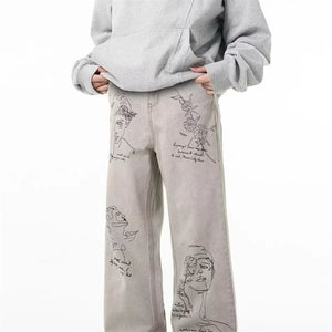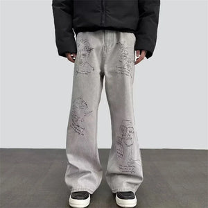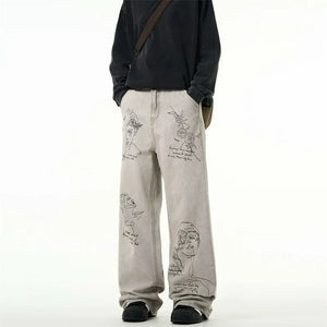 Y2K Coffee Shop Sketch Graphic Baggy Jeans