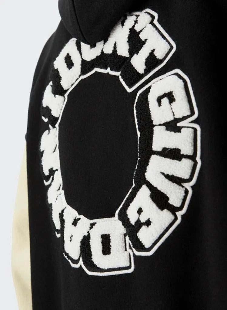 Damn It Varsity Jacket. Ideal to bring a touch of novelty and freshness to your Aesthetic and Streetwear look .The capsule is inspired by a vision of urban and streetwear fashion.