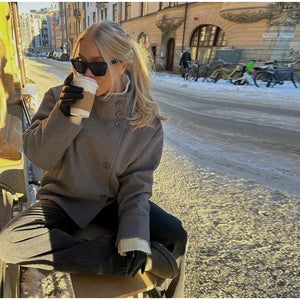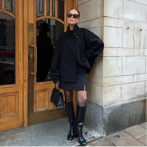 A mid-length high-neck jacket that redefines contemporary elegance. Designed for modern women seeking the perfect balance between sophistication and comfort.