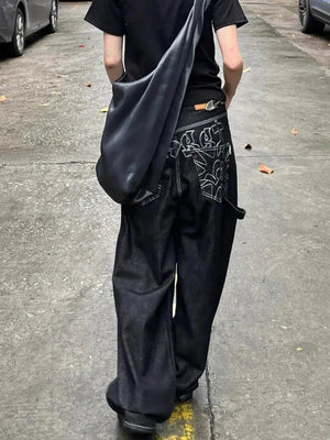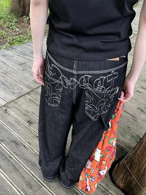 Y2K Baggy Black Embroidered Jeans