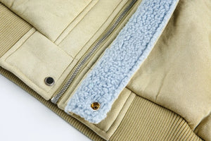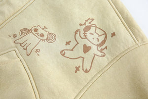 The contrast between the smooth outer fabric and the fluffy sherpa collar creates a warm, tactile feel, while the cartoon cat prints add a nostalgic Y2K touch. Easy to style, this jacket works perfectly with baggy jeans, cargos or layered over hoodies.
