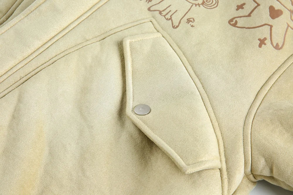 This Y2K cartoon sherpa jacket blends cozy textures with playful graphics for a standout streetwear look. Designed for autumn and winter, it features soft sherpa details and an oversized fit that feels as good as it looks.