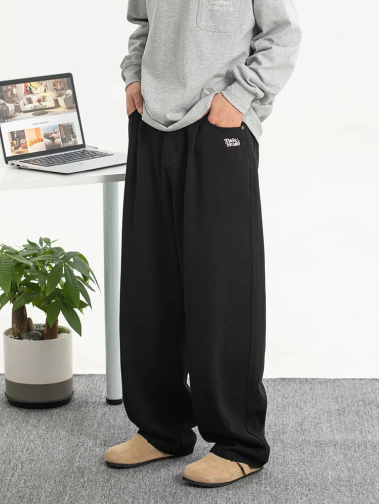 The all-black color makes them super wearable with pretty much anything in your closet, and the baggy shape gives that relaxed look that works all year round. The small embroidered detail adds a bit of personality, but still keeps it chill.