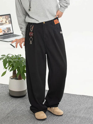 Y2K Embroidered Black Baggy Jeans