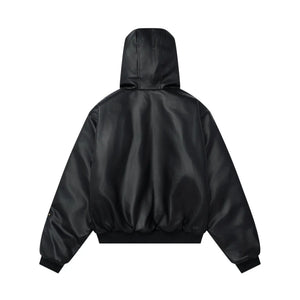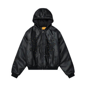 Y2K Embroidered Quilted PU Leather Hooded Jacket