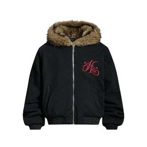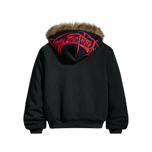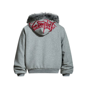 Y2K Faux Fur Hooded Letter Embroidery Jacket