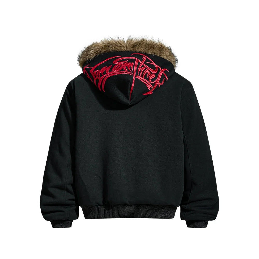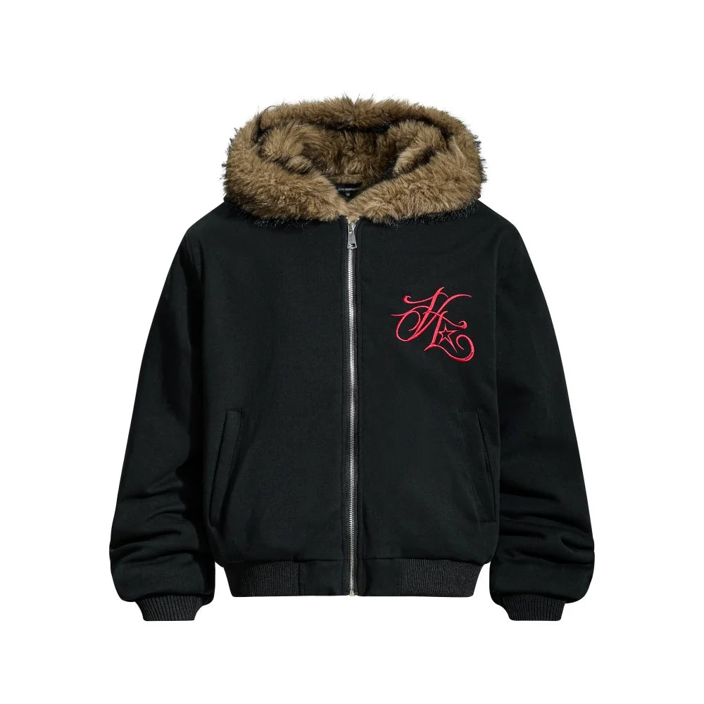 This Y2K faux fur hooded jacket is built for cold seasons and bold streetwear looks. The standout feature is its oversized hood trimmed with soft faux fur, adding both warmth and strong visual impact. Finished with embroidered lettering, this piece blends early-2000s attitude with modern high street energy.