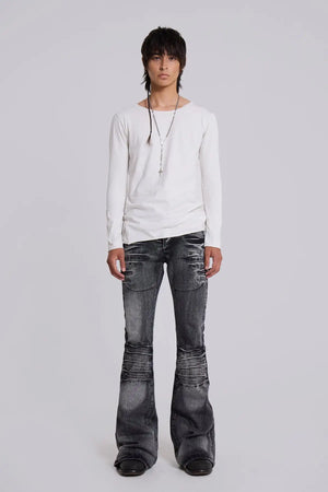These Y2K flared jeans bring a clean retro silhouette with a modern edge. Slim through the leg with a subtle flare at the hem, the vintage washed denim gives an effortless early-2000s feel that works day or night.