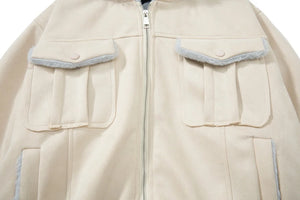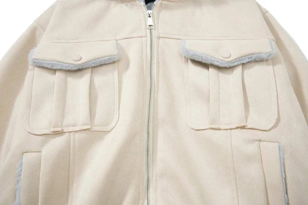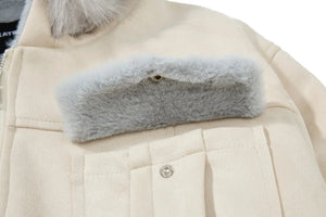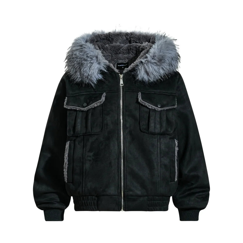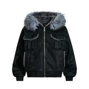Y2K Fur Hooded Padded Jacket Multi Pockets