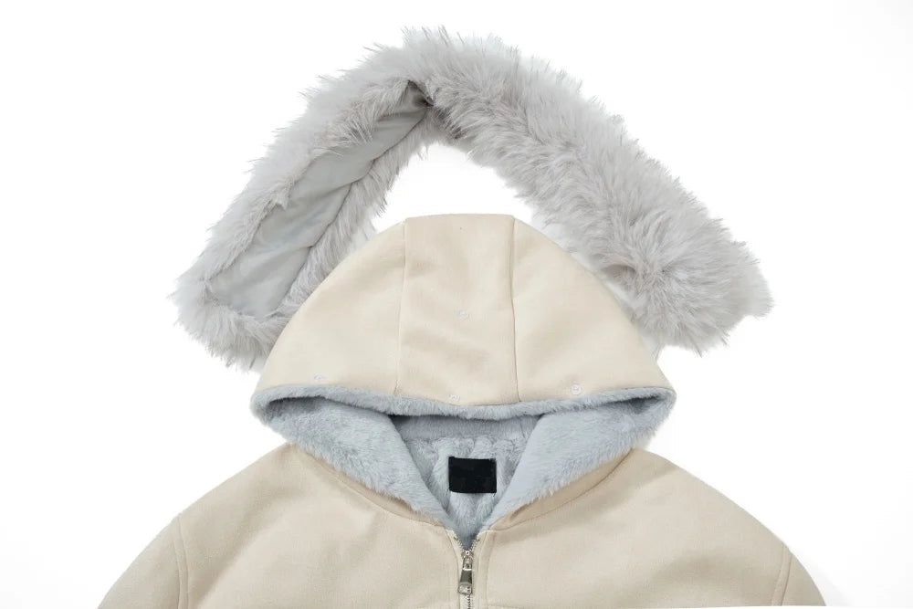 Built for everyday wear, the jacket features a practical multi-pocket layout and a full zip closure. The removable fur hood allows you to switch between a clean street look and a more elevated winter style. Whether styled with baggy denim or cargo pants, this piece fits naturally into a modern Y2K wardrobe.