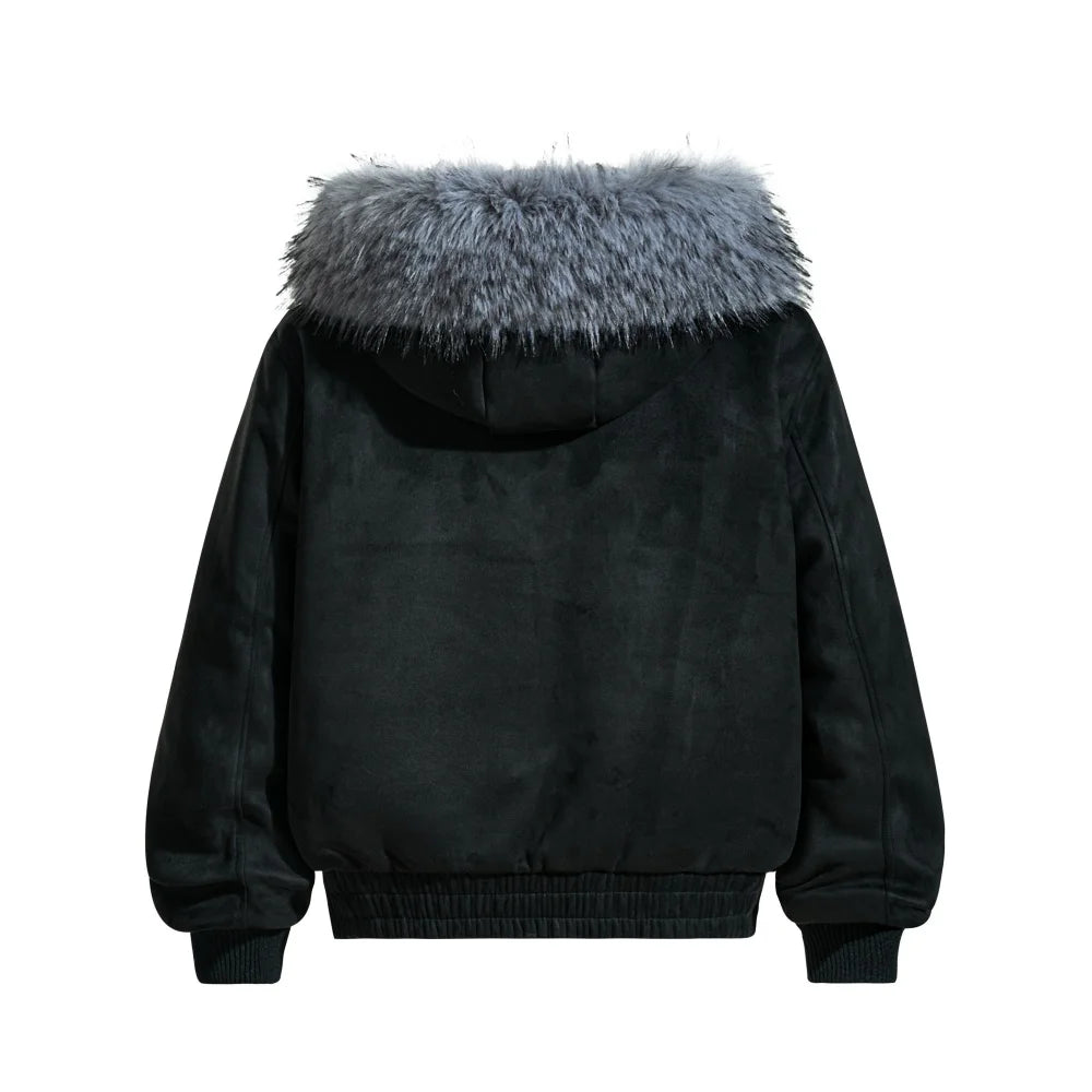 This Y2K-inspired padded jacket blends winter protection with a bold high street silhouette. Designed with a thick fleece lining and a plush fur-trimmed hood, it delivers both warmth and attitude. Its oversized fit and clean construction make it an easy statement piece for cold-season layering.