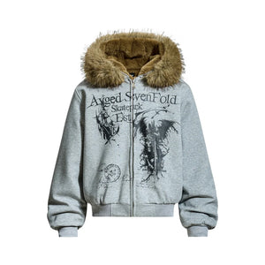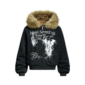 Y2K Grim Reaper Fur Hooded Jacket