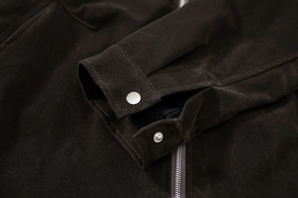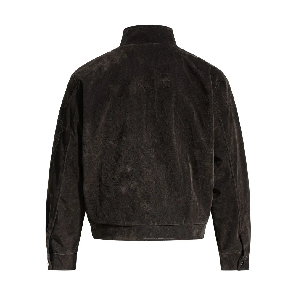 The stand collar and full zip closure keep the shape sharp and easy to layer, while the relaxed fit makes it comfortable for everyday wear. A strong statement piece for autumn and winter fits — minimal from a distance, rich in detail up close.