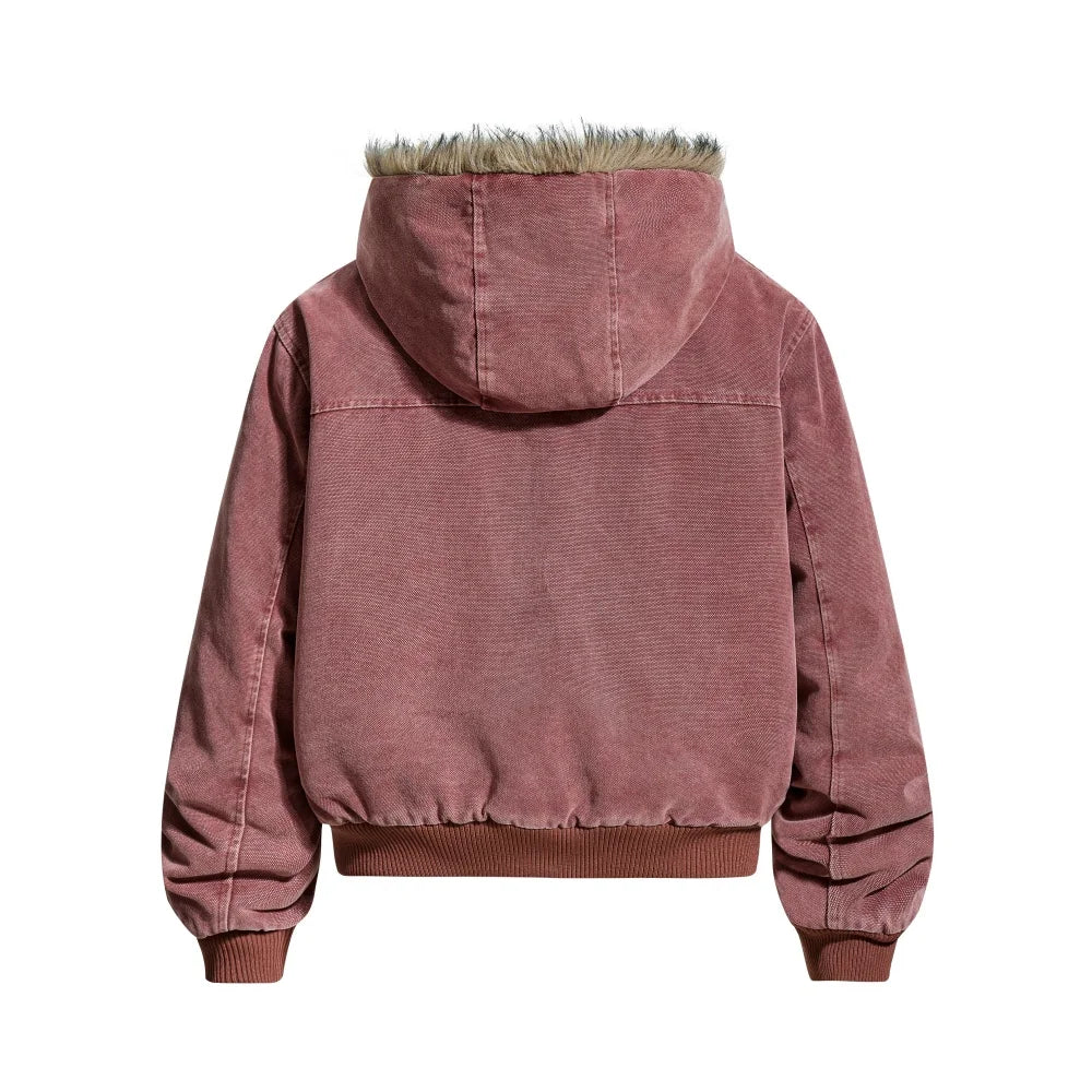 - Faux fur–lined hood for winter comfort