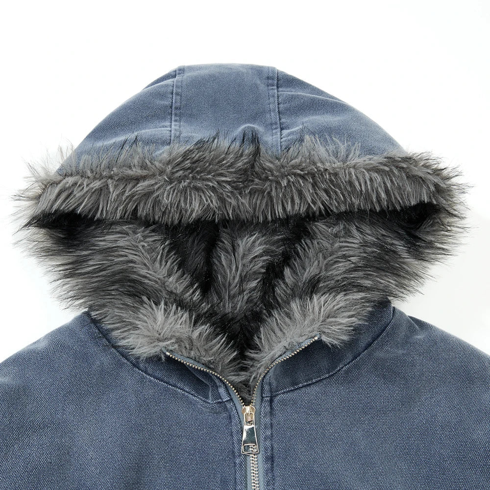Y2K Quilted Hooded Jacket with Fur Collar