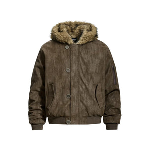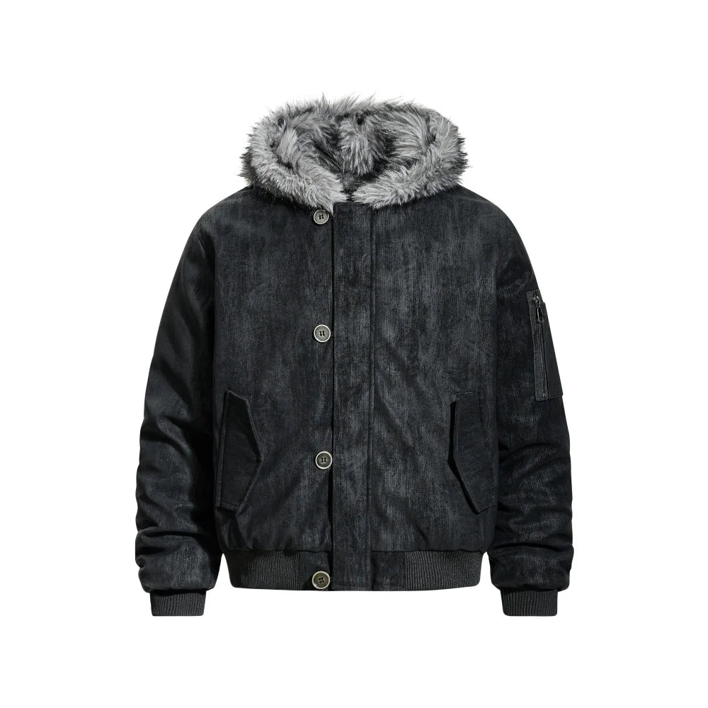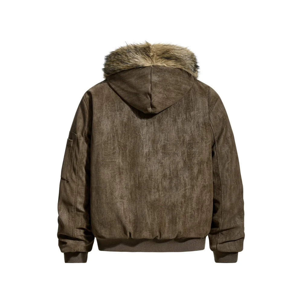 This Y2K retro hooded jacket blends early 2000s streetwear energy with a winter-ready construction. Designed with a faux fur collar and a relaxed silhouette, it delivers both warmth and attitude without falling into oversized puffer territory.