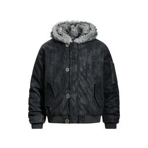 Y2K Retro Hooded Jacket with Faux Fur Collar