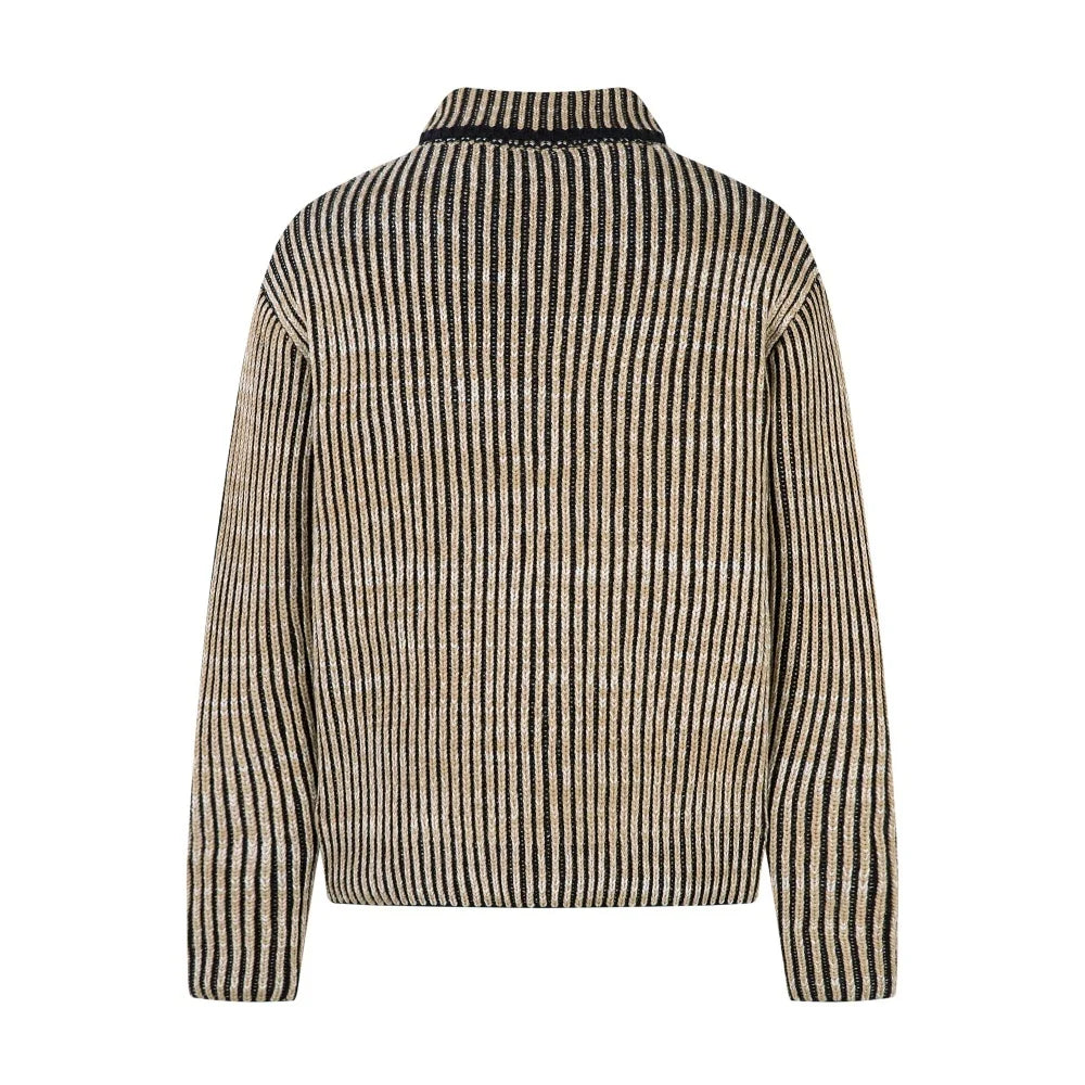 This Y2K striped knit zip sweater jacket blends retro high street energy with modern comfort. Designed for everyday wear, it features a clean striped pattern, a full zip closure, and a relaxed fit that works perfectly for layering.