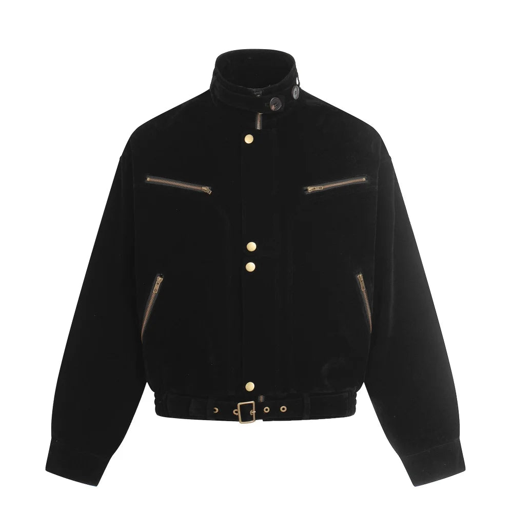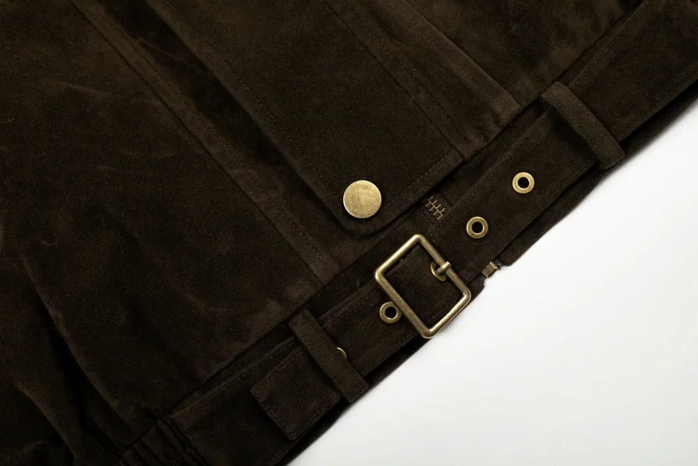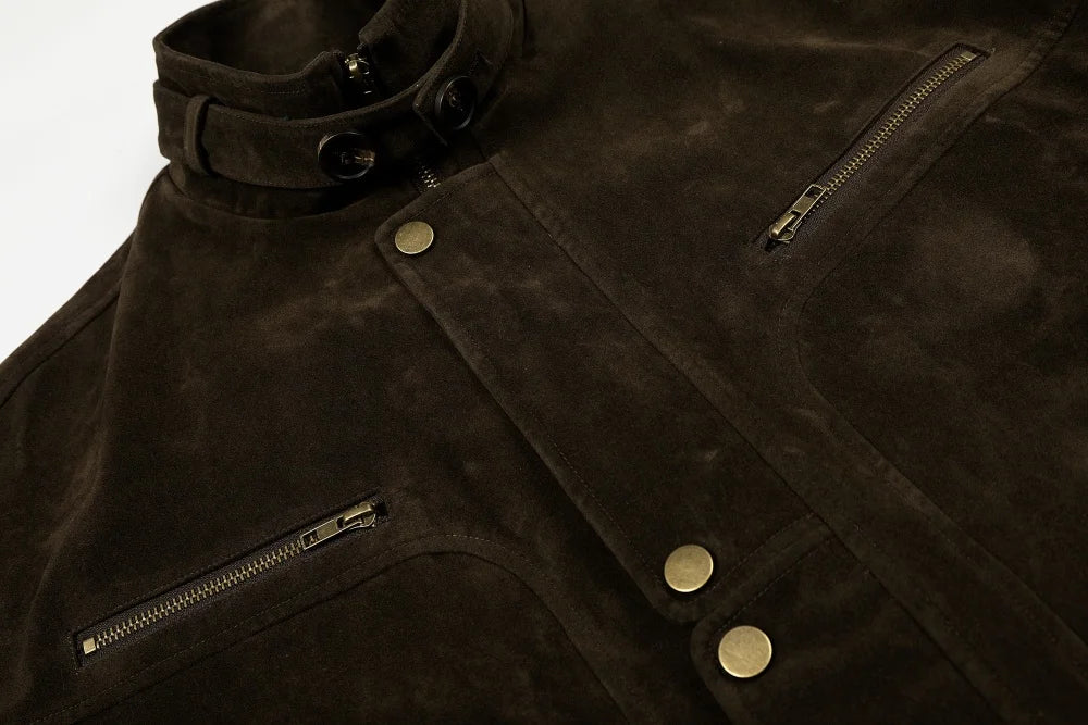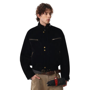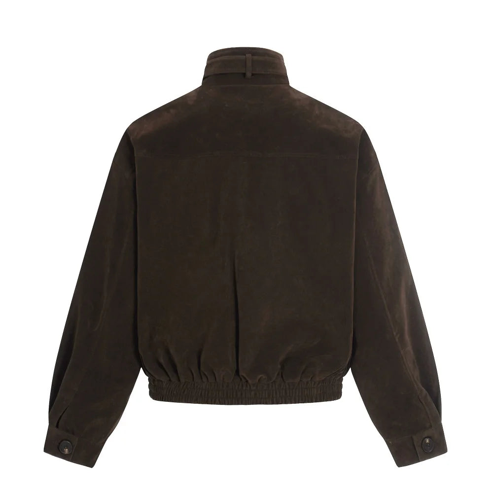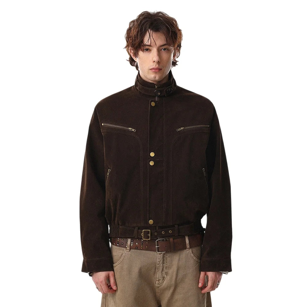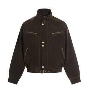 Y2K Suede Zip Jacket with Stand Collar
