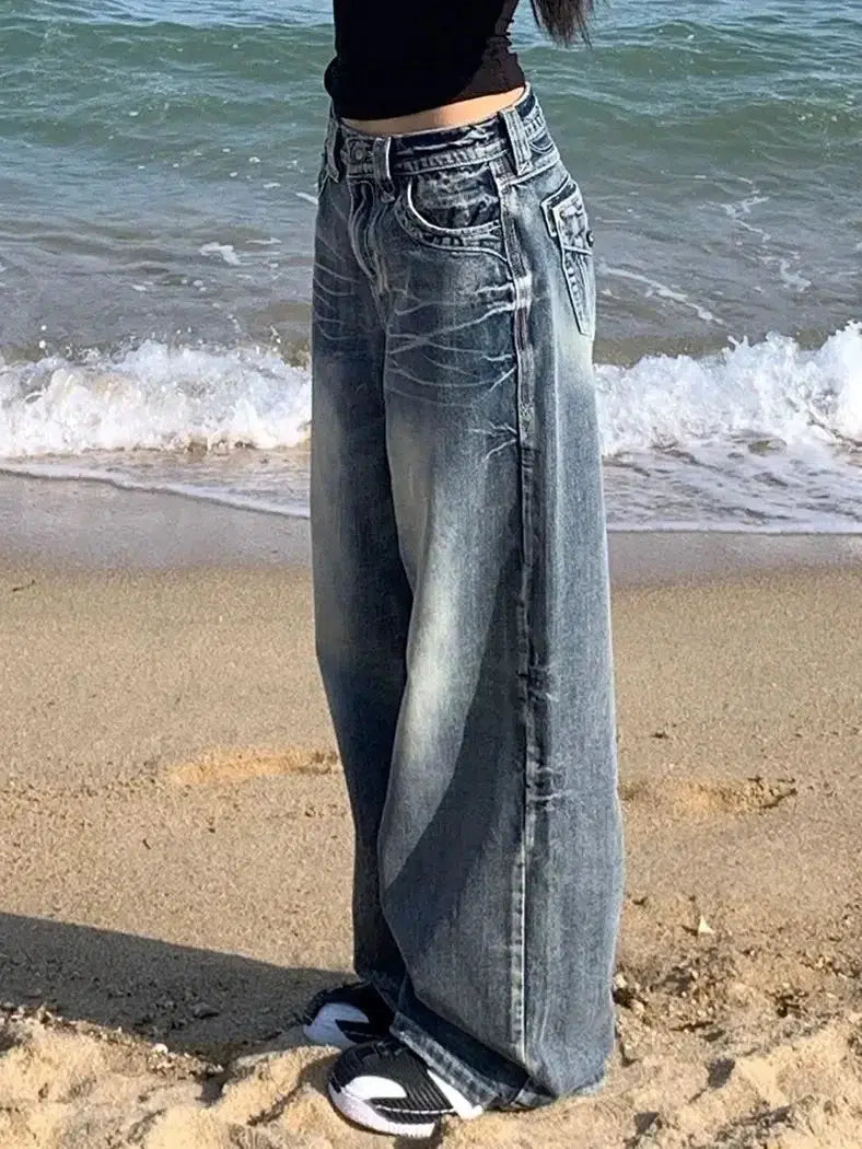 Pair these Y2K Baggy Vintage Washed Jeans with a cropped top or go full-on retro with a chunky sweater and platform sneakers.