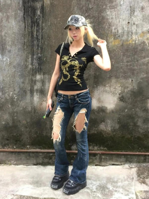 This edgy, Golden Sigilism Backless Top stands out with its bold golden sigil design on the upper back, blending streetwear with a unique artistic touch. With its slim fit and cropped length, this top pairs effortlessly with distressed jeans or cargo pants, offering a bold and contemporary look for casual outings or urban streetwear vibes.