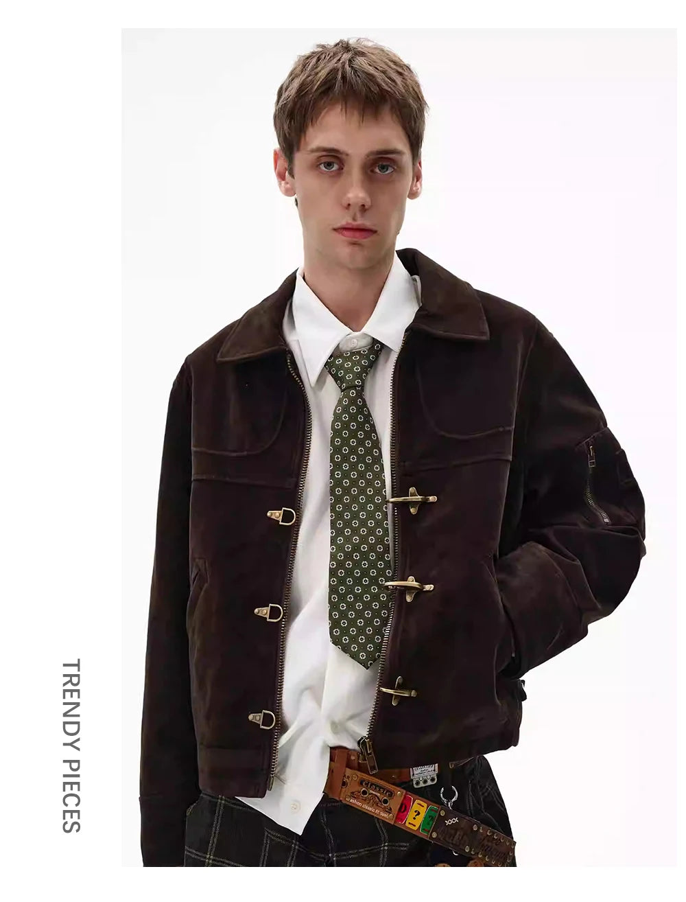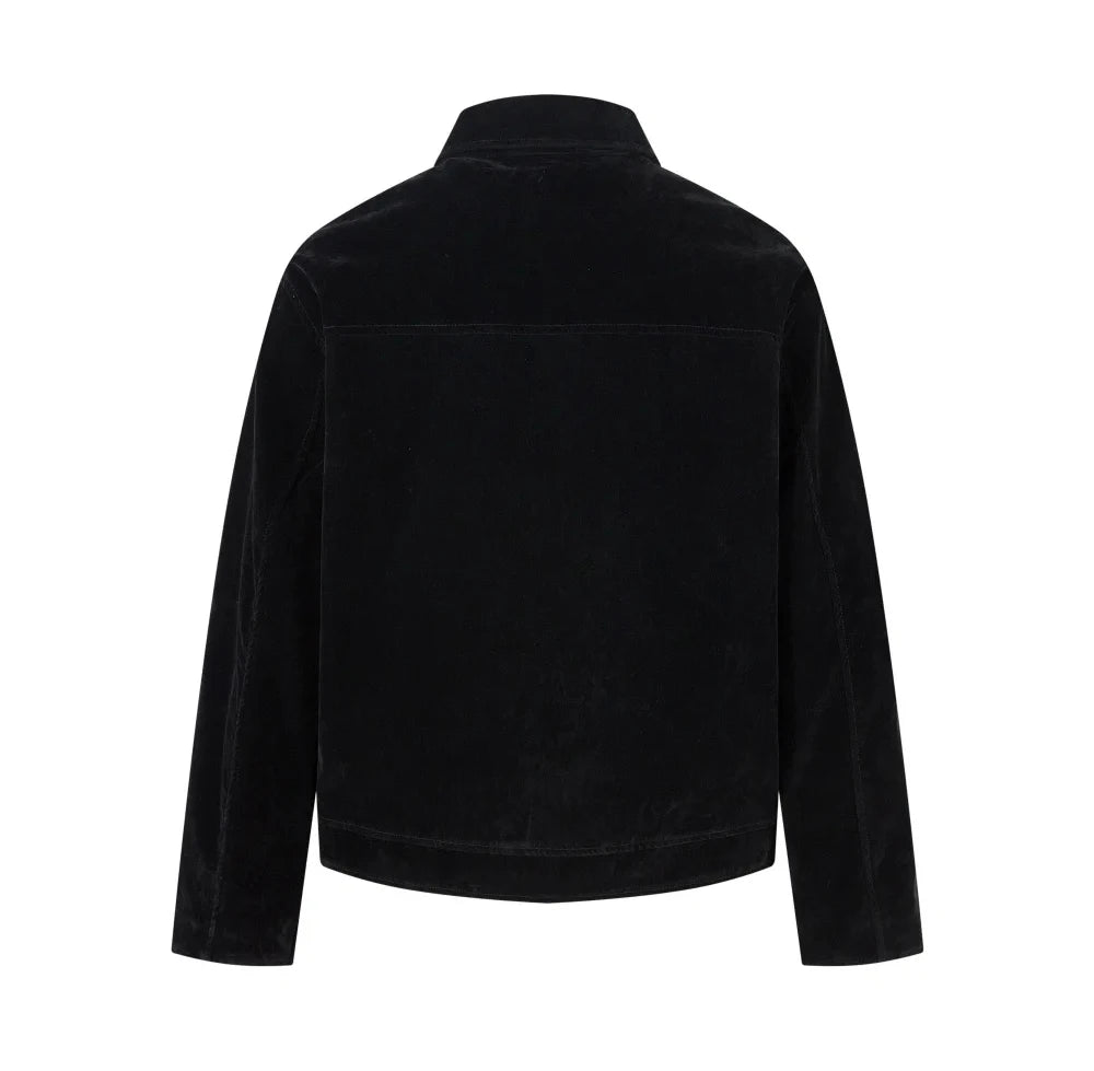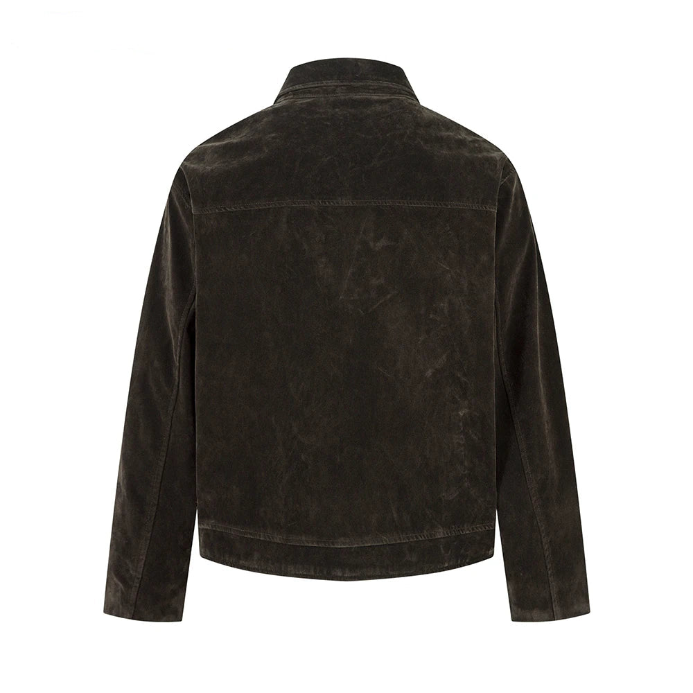This retro-inspired jacket blends high street attitude with a vintage workwear aesthetic. Designed with a loose, oversized fit and a suede-effect finish, it delivers a strong silhouette while remaining easy to wear.