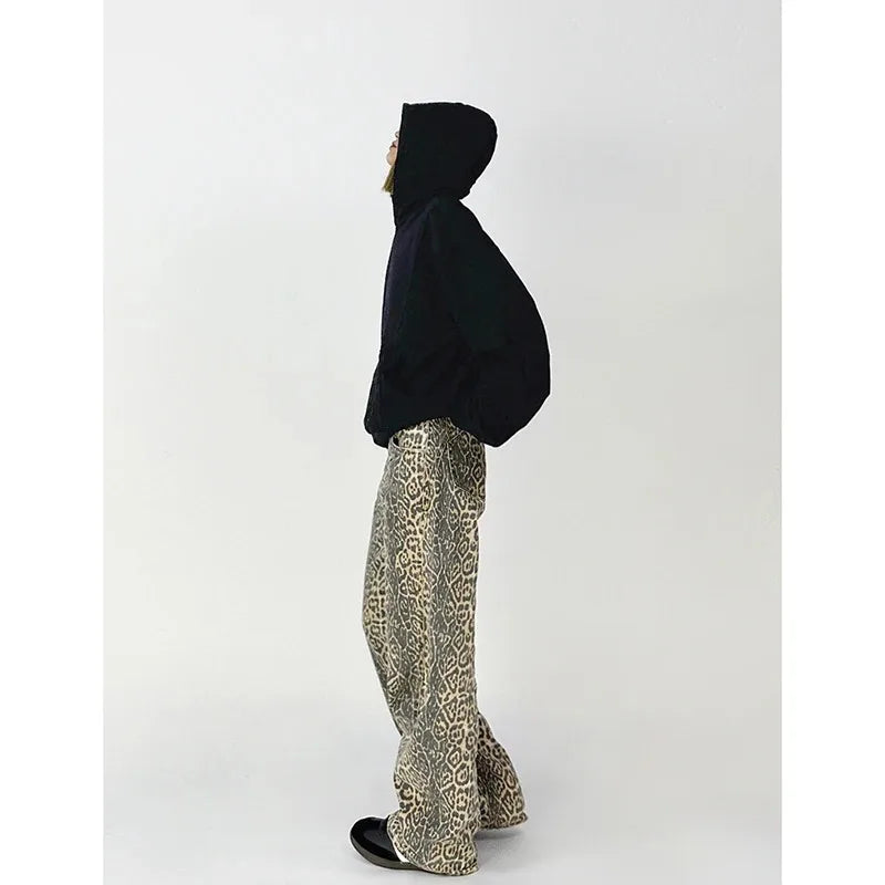 Designed for women, these jeans feature a loose silhouette that allows for movement while maintaining a structured shape. The subtle animal print adds a nostalgic touch, making them a great option for a range of looks. The soft yet durable fabric ensures a comfortable feel, making these jeans an easy choice for everyday wear.